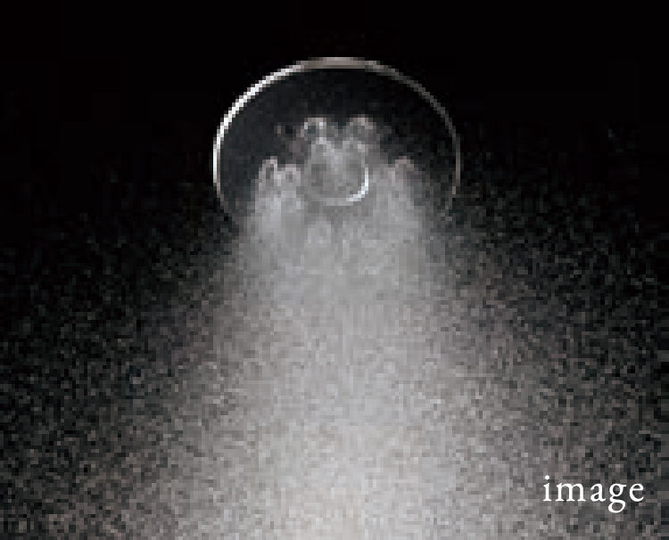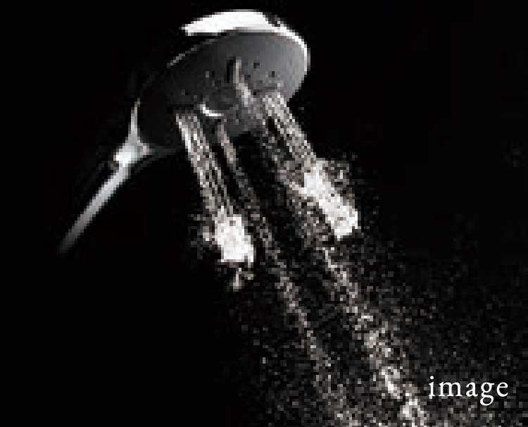 ソフトな浴び心地のシルクミスト、断続的な水流で刺激的なパワーマッサージ、空気を含んだ大粒のアクアスプレー、3種類の吐水が楽しめます。